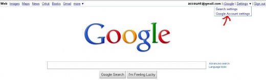 Open your favourite web browser and go to https://www.google.com/accounts/ or simply open www.google .com and click on ‘sign in’ on top right corner, once you signed in you will redirected to google home page. Here click on settings and choose google account settings from the drop down menu as shown in the image.